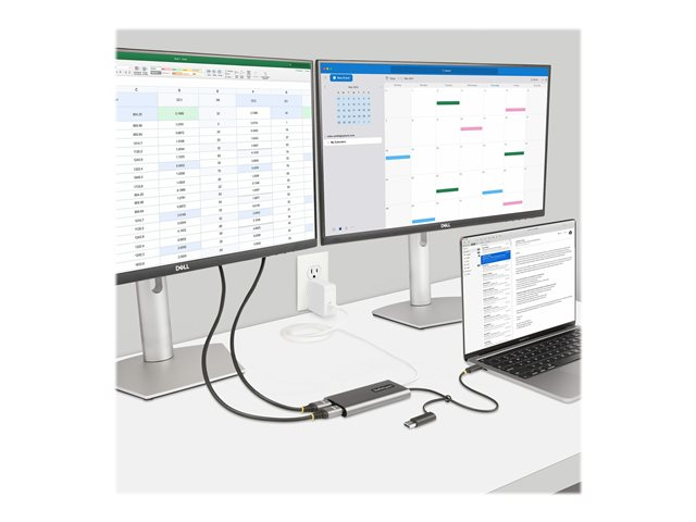 StarTech.com USB-C to Dual-HDMI Adapter, USB-C or A to 2x HDMI, 4K 60Hz, 100W PD Pass-Through, 1ft (30cm) Built-in Cable, External Video Graphics Adapter - USB to HDMI Multi-Monitor Converter for Laptop (109B-USBC-HDMI) - Videokort - TAA-kompatibel - USB typ A, USB-C hane till 2 x 19 pin HDMI Type A, USB-C hona - 30 cm - grå - stöd för 4K, aktiv