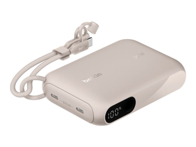 Belkin BoostCharge - Power bank - med display - 10000 mAh - 20 Watt - PD - 2 utdatakontakter (USB-C) - på kabel: USB-C - sand