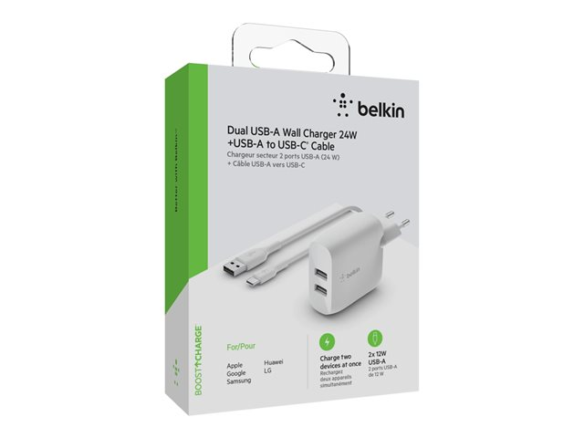 Belkin BoostCharge - Strömadapter - 24 Watt - 2 utdatakontakter (USB) - vit WCE001VF1MWH