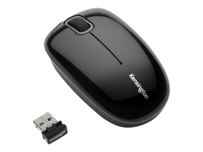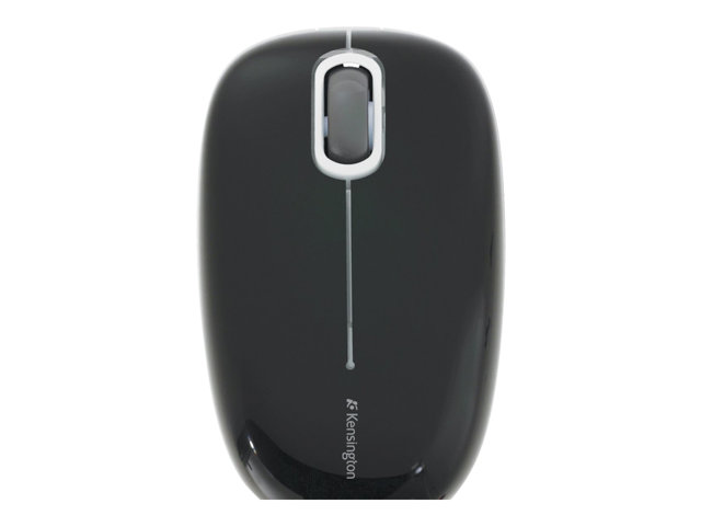 Kensington PocketMouse - Mus - höger- och vänsterhänta - optisk - trådlös - 2.4 GHz - trådlös USB-mottagare - högglänsande svart med mattsvart och grå finish