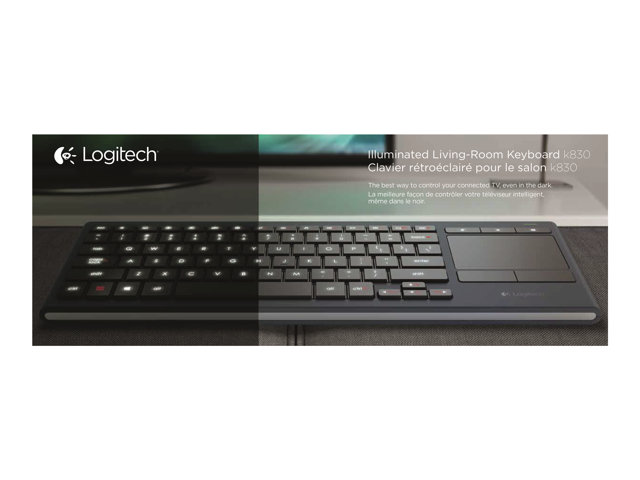 Logitech Illuminated Living-Room K830 - Tangentbord - trådlös - 2.4 GHz - nordisk 920-006090