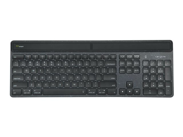 Targus EcoSmart - Tangentbord - hållbar energiutvinning - antimikrobiell - bakgrundsbelyst - trådlös - Bluetooth 5.0 - QWERTY - tysk - tangentbrytare: Saxnyckel - svart - recycled packaging