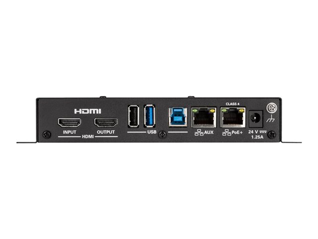 | Terminaler | (1) x HDMI-ingång - 19 pin HDMI typ A (1) x HDMI-utgång - 19 pin HDMI typ A (1) x USB 2.0 - 4 pin USB typ A (1) x USB 3.0 - 9 pin USB Type A (1) x USB 3.0 - 9 pin USB typ B (2) x nätverk - RJ-45 (1) x infraröd utgång - terminalblock med 2 stift (1) x seriell - terminalblock med 5 stift (1) x balanserade ljudutgångar - terminalblock med 5 stift - stereo |