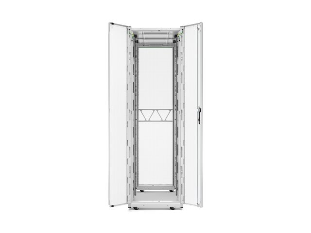 | Egenskaper | Integrerad kabelhantering, låsbara dörrar, borttagbara sidopaneler, perforerad dörr (80%), 2 mm EIA-monteringsskenor, 270° dörröppning |