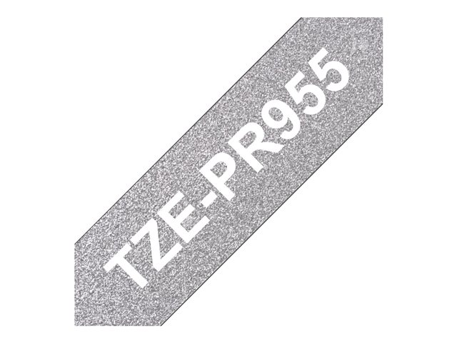 Brother TZe-PR955 - Vit utskrift på premium, glitter silver - Rulle ( 2,4 cm x 8 m) 1 kassett(er) bandlaminat - för Brother PT-H110, H200; P-Touch PT-D210, D800, H110, H200, P900; P-Touch Cube Pro PT-P910