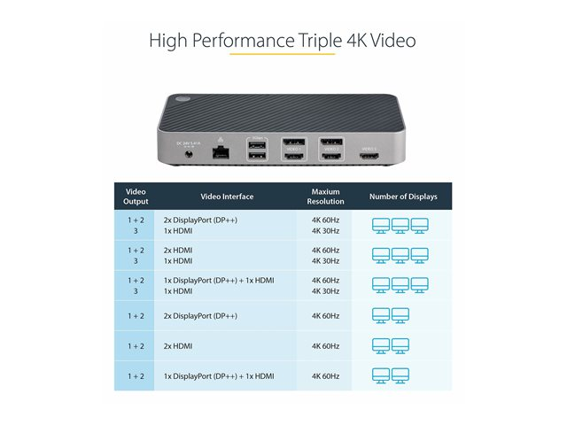 StarTech.com USB-C Triple Monitor Docking Station - HDMI/DP Triple 4k USB-C Dock - 5x USB Hub - GbE - 100W PD - Universal Multi Monitor Docking Station - Thunderbolt 3/4 Compatible (116E-USBC-DOCK) - dockningsstation - USB-C - 1GbE