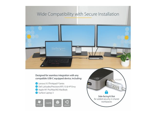 StarTech.com USB-C Triple Monitor Docking Station - HDMI/DP Triple 4k USB-C Dock - 5x USB Hub - GbE - 100W PD - Universal Multi Monitor Docking Station - Thunderbolt 3/4 Compatible (116E-USBC-DOCK) - dockningsstation - USB-C - 1GbE 116E-USBC-DOCK